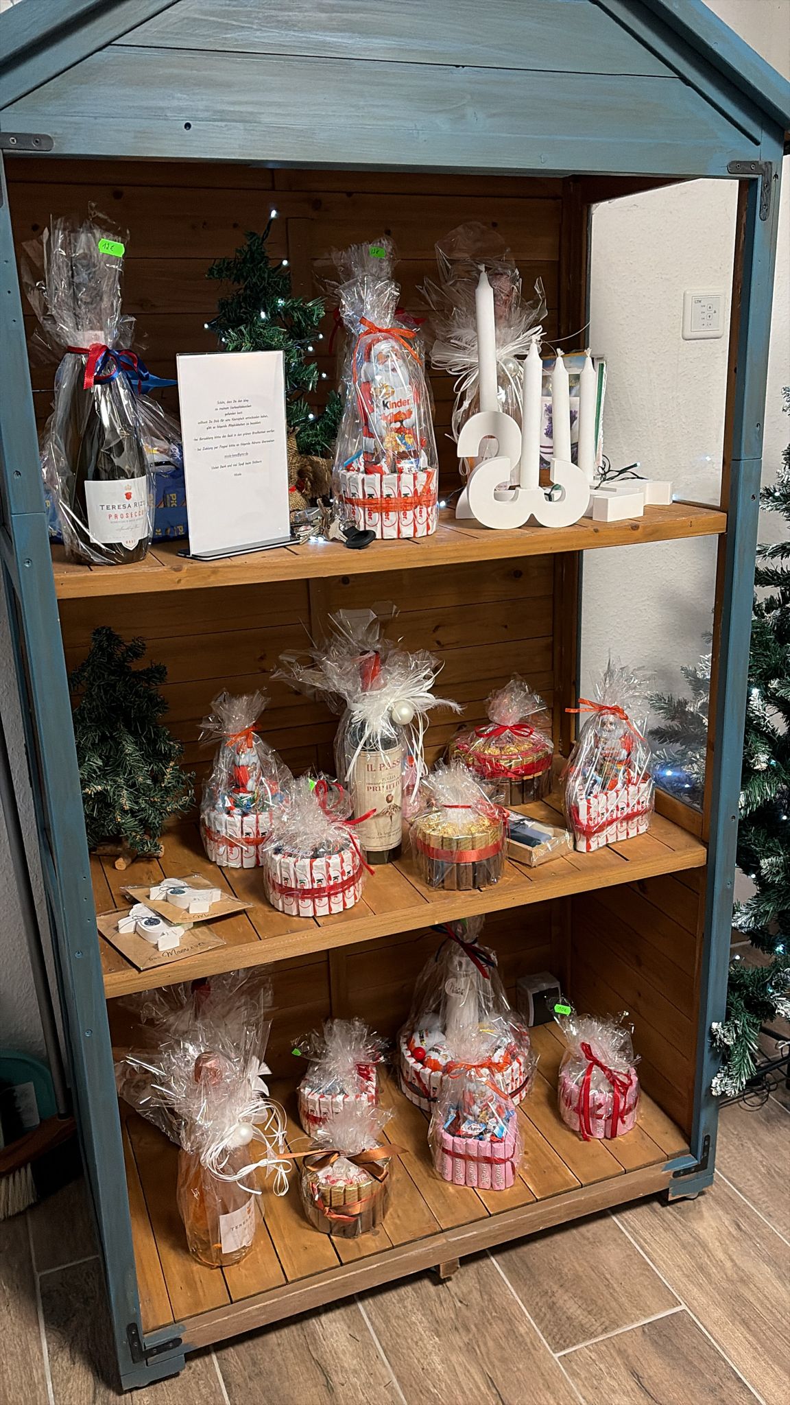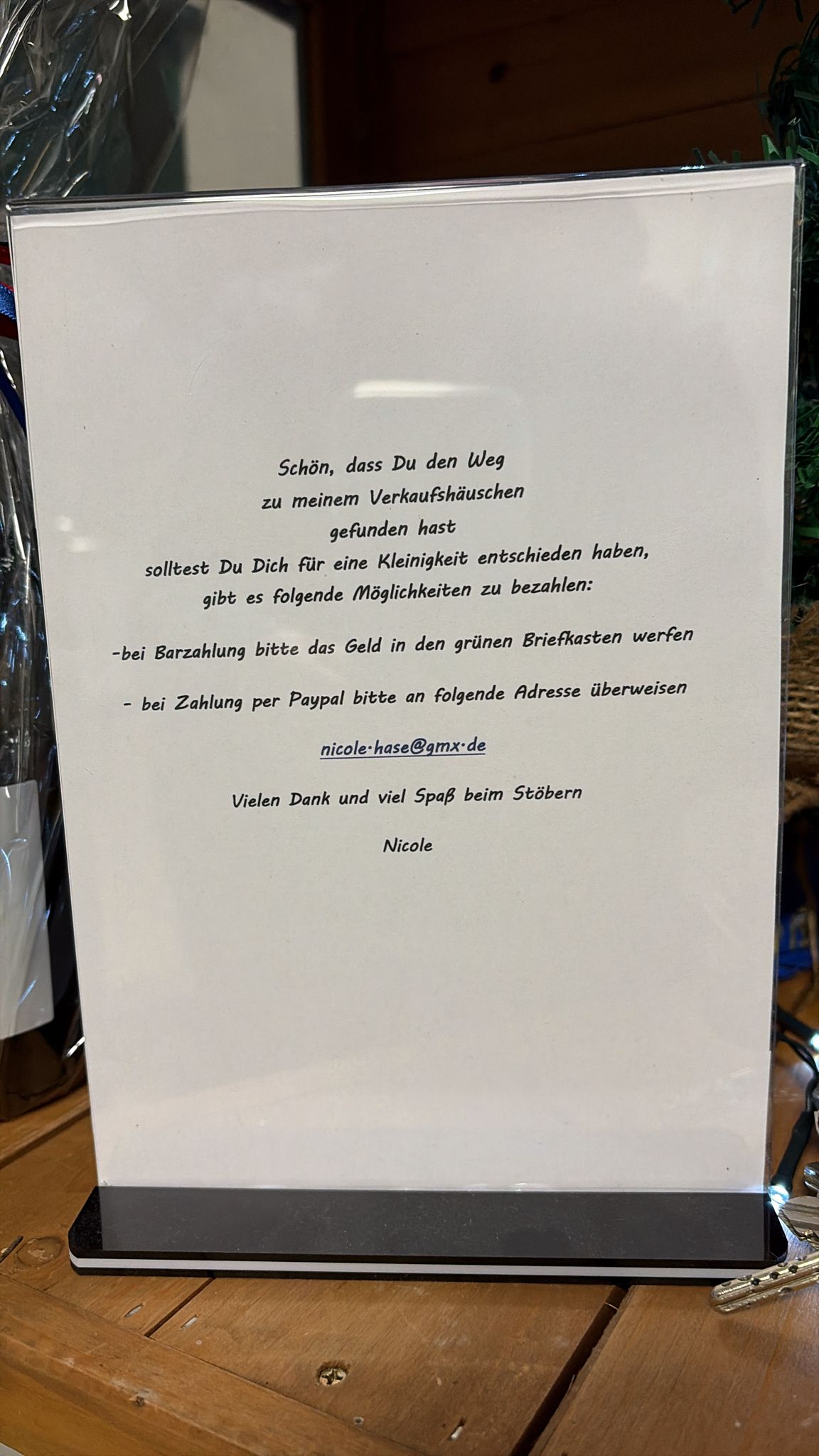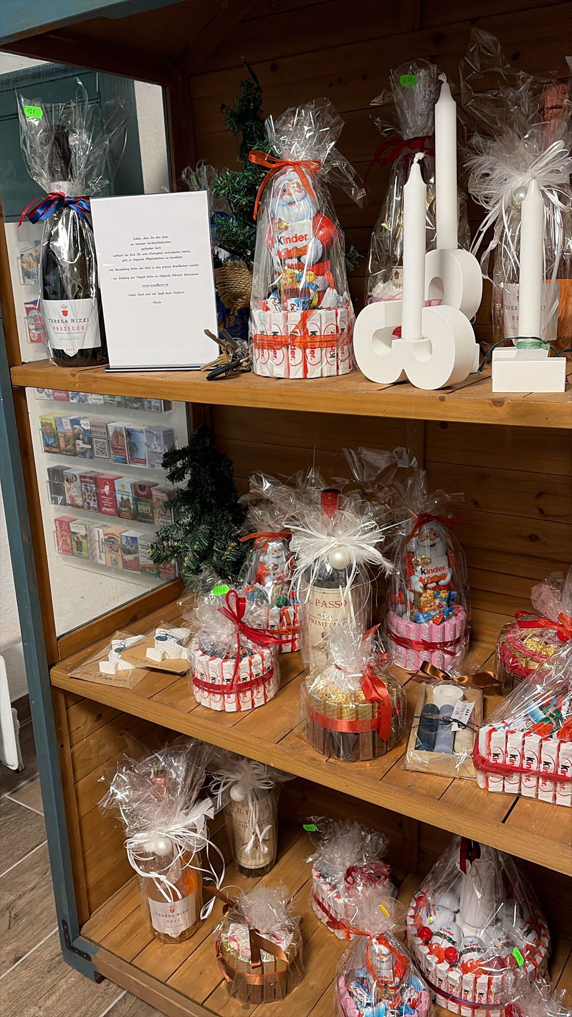 In unserem kleinen Verkaufshäuschen, dass sich in der Rezeption befindet, haben Sie verschiedene Artikel für jeden Anlass zur Auswahl. Stöbern Sie gern in unserem Sortiment!